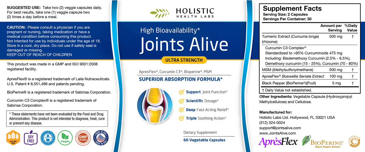 Joints Alive Supplement Label